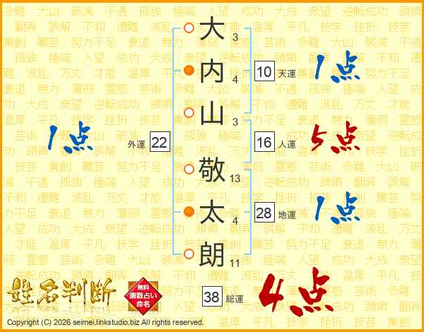 大内山敬太朗さんの総運は38画の4点!