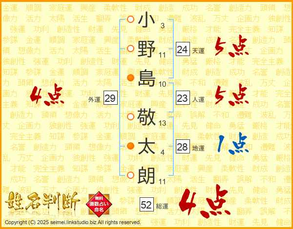 小野島敬太朗さんの総運は52画の4点!