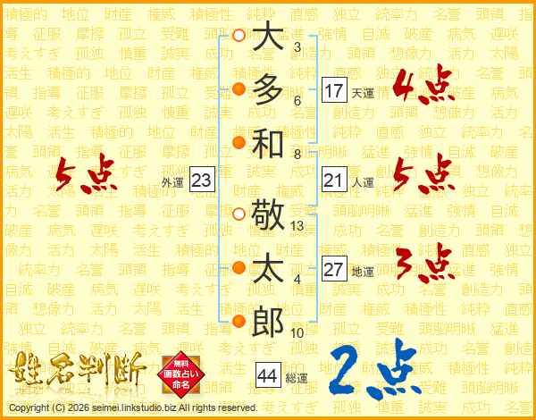 大多和敬太郎さんの総運は44画の2点!