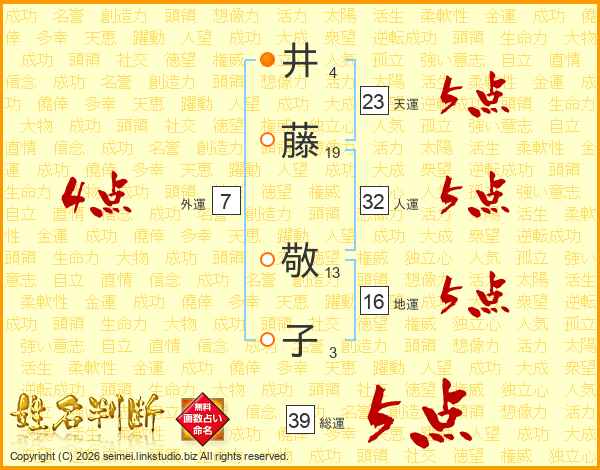 井(4画)藤(19画)  敬(13画)子(3画)