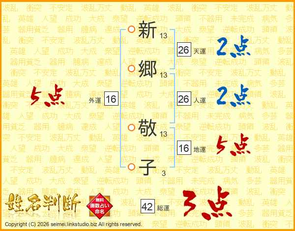 新(13画)郷(13画) 敬(13画)子(3画)