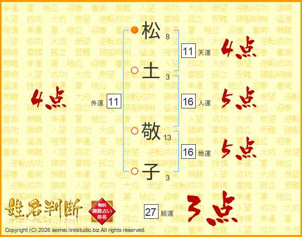 松(8画)土(3画) 敬(13画)子(3画)