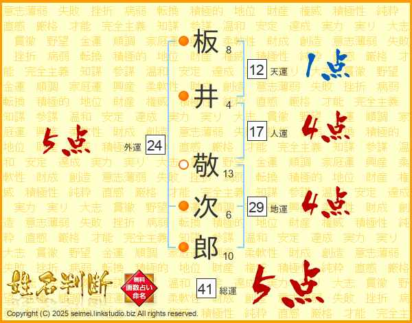 板(8画)井(4画) 敬(13画)次(6画)郎(10画)