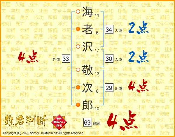 海老沢敬次郎さんの総運は63画の4点!