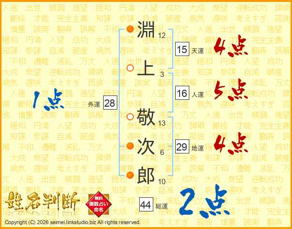 淵上敬次郎さんの総運は44画の2点!