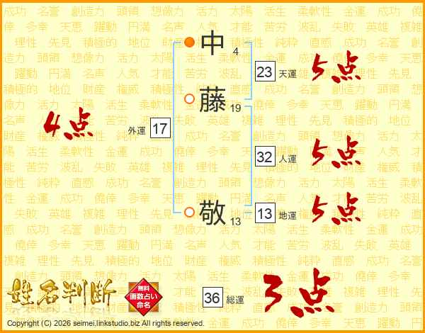 中藤敬さんの天運は23画の5点!