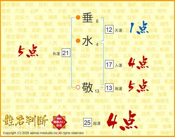 垂(8画)水(4画) 敬(13画)