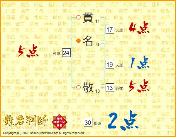 貫名敬さんの天運は17画の4点!