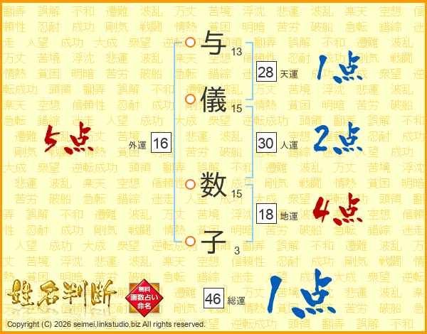 与儀数子さんの総運は46画の1点!