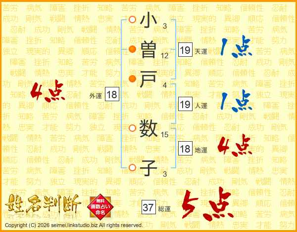 小曽戸数子さんの総運は37画の5点!