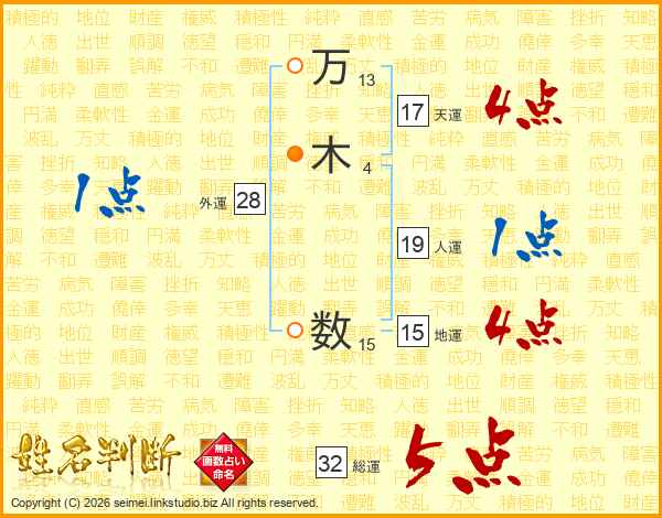 万木数さんの総運は32画の5点!