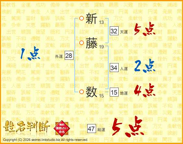 新藤数さんの総運は47画の5点!