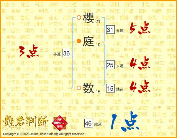 櫻(21画)庭(10画) 数(15画)