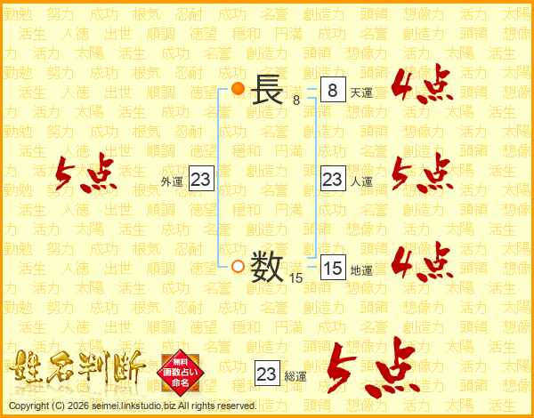 長数さんの人運は23画の5点!