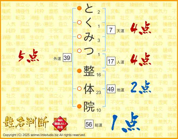 と(2画)く(1画)み(3画)つ(1画) 整(16画)体(23画)院(10画)