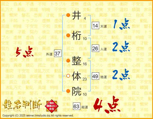 井(4画)桁(10画) 整(16画)体(23画)院(10画)