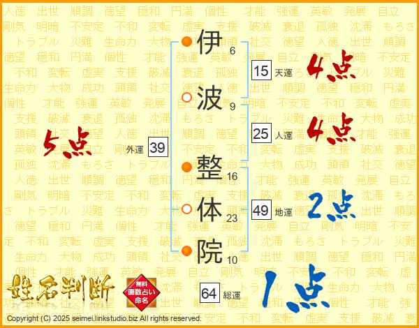 伊波整体院さんの総運は64画の1点!