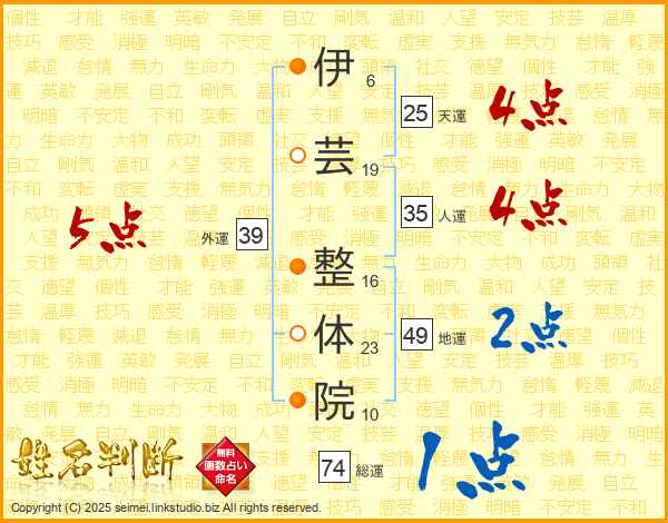 伊(6画)芸(19画) 整(16画)体(23画)院(10画)