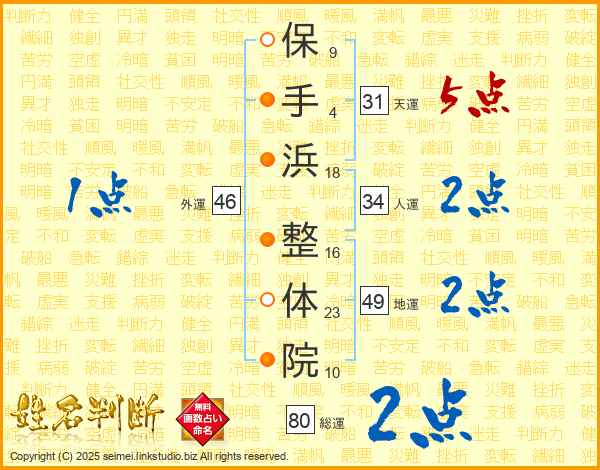 保(9画)手(4画)浜(18画) 整(16画)体(23画)院(10画)