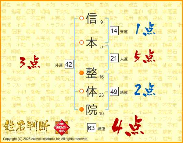 信(9画)本(5画) 整(16画)体(23画)院(10画)