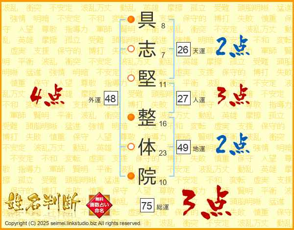 具志堅整体院さんの総運は75画の3点!