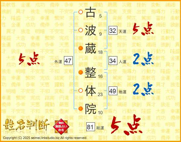 古波蔵整体院さんの総運は81画の5点!