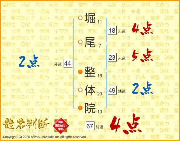 堀(11画)尾(7画) 整(16画)体(23画)院(10画)