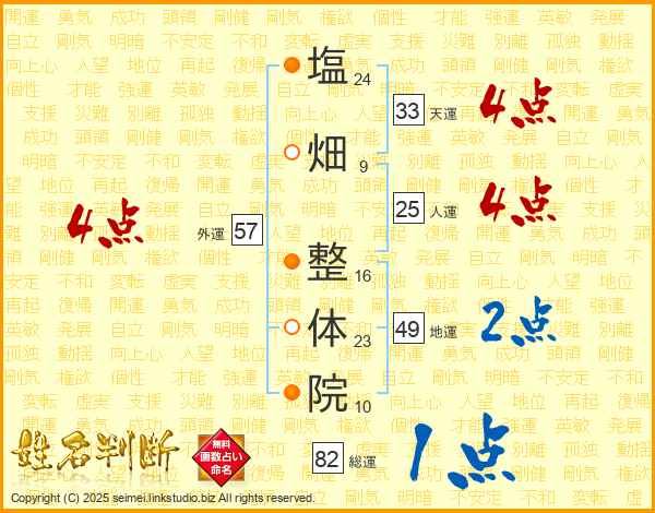 塩畑整体院さんの人運は25画の4点!