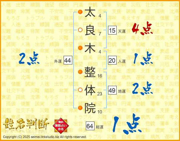 太(4画)良(7画)木(4画) 整(16画)体(23画)院(10画)