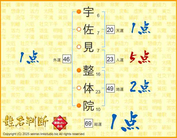 宇佐見整体院さんの総運は69画の1点!