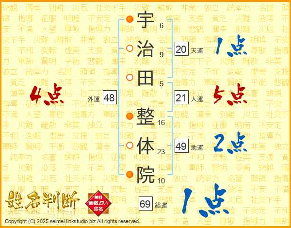 宇治田整体院さんの総運は69画の1点!