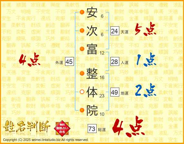 安(6画)次(6画)富(12画) 整(16画)体(23画)院(10画)