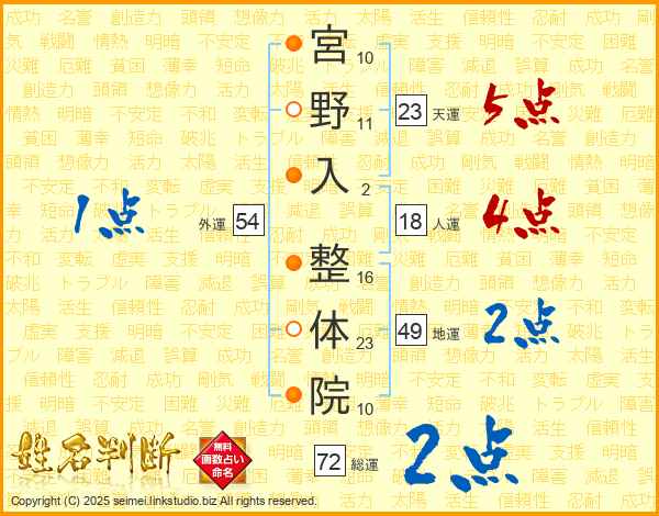 宮(10画)野(11画)入(2画) 整(16画)体(23画)院(10画)
