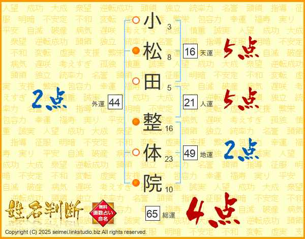 小松田整体院さんの総運は65画の4点!