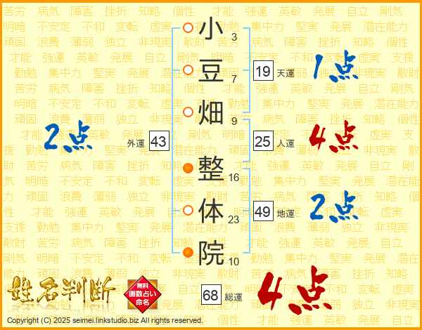 小(3画)豆(7画)畑(9画) 整(16画)体(23画)院(10画)