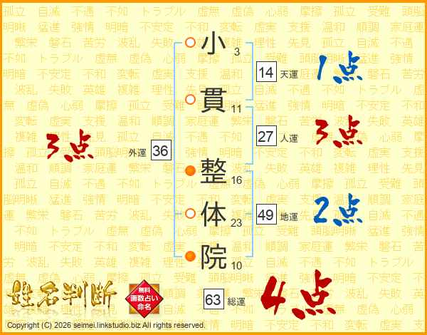 小貫整体院さんの人運は27画の3点!
