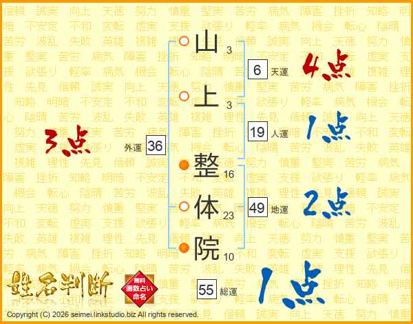 山上整体院さんの総運は55画の1点!
