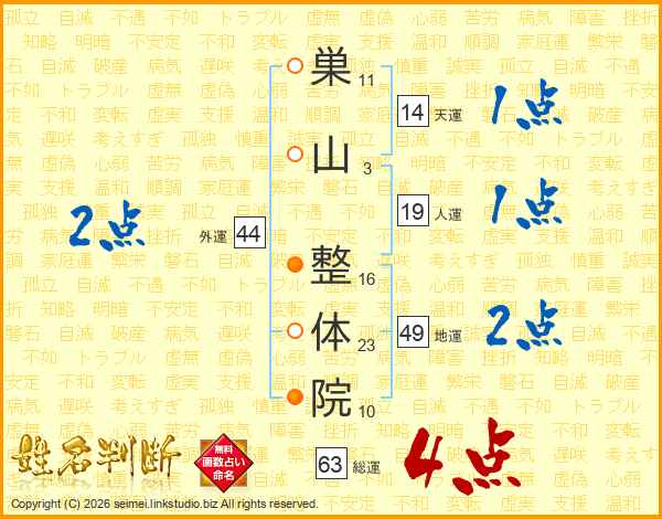 巣山整体院さんの総運は63画の4点!