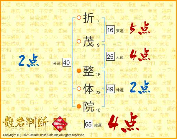 折茂整体院さんの総運は65画の4点!