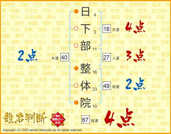 日(4画)下(3画)部(11画) 整(16画)体(23画)院(10画)