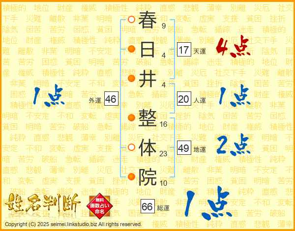 春(9画)日(4画)井(4画) 整(16画)体(23画)院(10画)