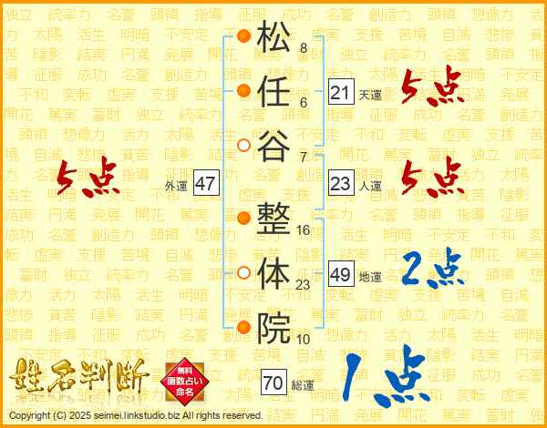 松任谷整体院さんの天運は21画の5点!