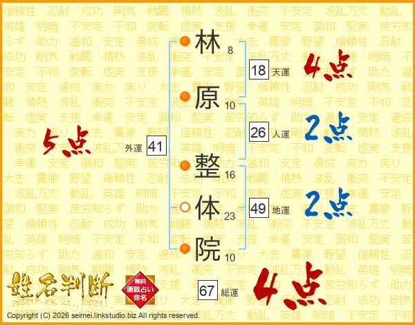 林(8画)原(10画) 整(16画)体(23画)院(10画)
