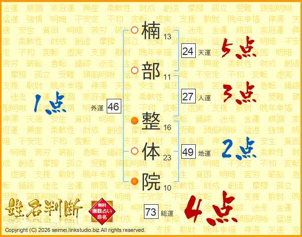 楠部整体院さんの総運は73画の4点!