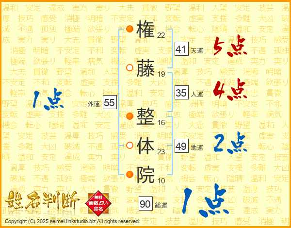 権藤整体院さんの天運は41画の5点!