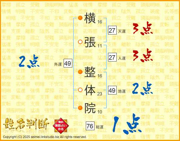 横張整体院さんの総運は76画の1点!
