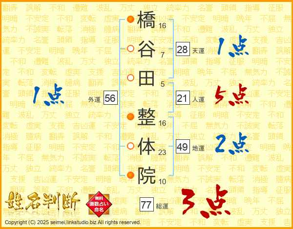 橋谷田整体院さんの総運は77画の3点!
