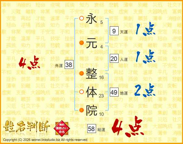 永(5画)元(4画) 整(16画)体(23画)院(10画)