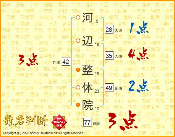 河辺整体院さんの総運は77画の3点!