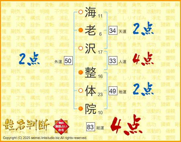 海(11画)老(6画)沢(17画) 整(16画)体(23画)院(10画)